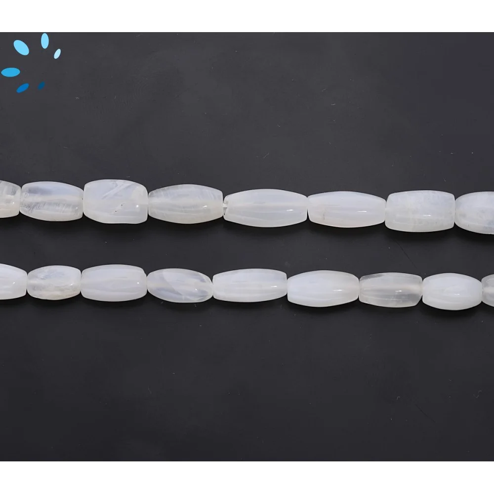 White Moonstone Smooth Barrel Top to Bottom Drilled Beads 10x6-12x7mm - 14 Inch Strand