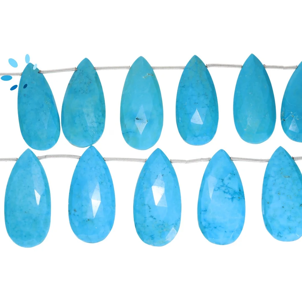 Turquoise Color Howlite Faceted Long Pear Top Drilled Beads 16x13 - 18x14mm - 8 Inch Strand