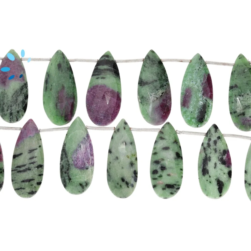 Ruby Zoisite Faceted Long Pear Top Drilled Beads 22x10 - 24x12mm - 8 Inch Strand