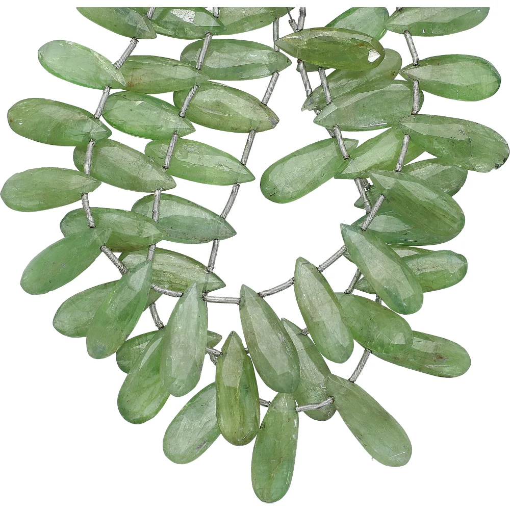 Green Kyanite Faceted Pear Top Drilled Beads 11x8 - 17x8mm - 8 Inch Strand