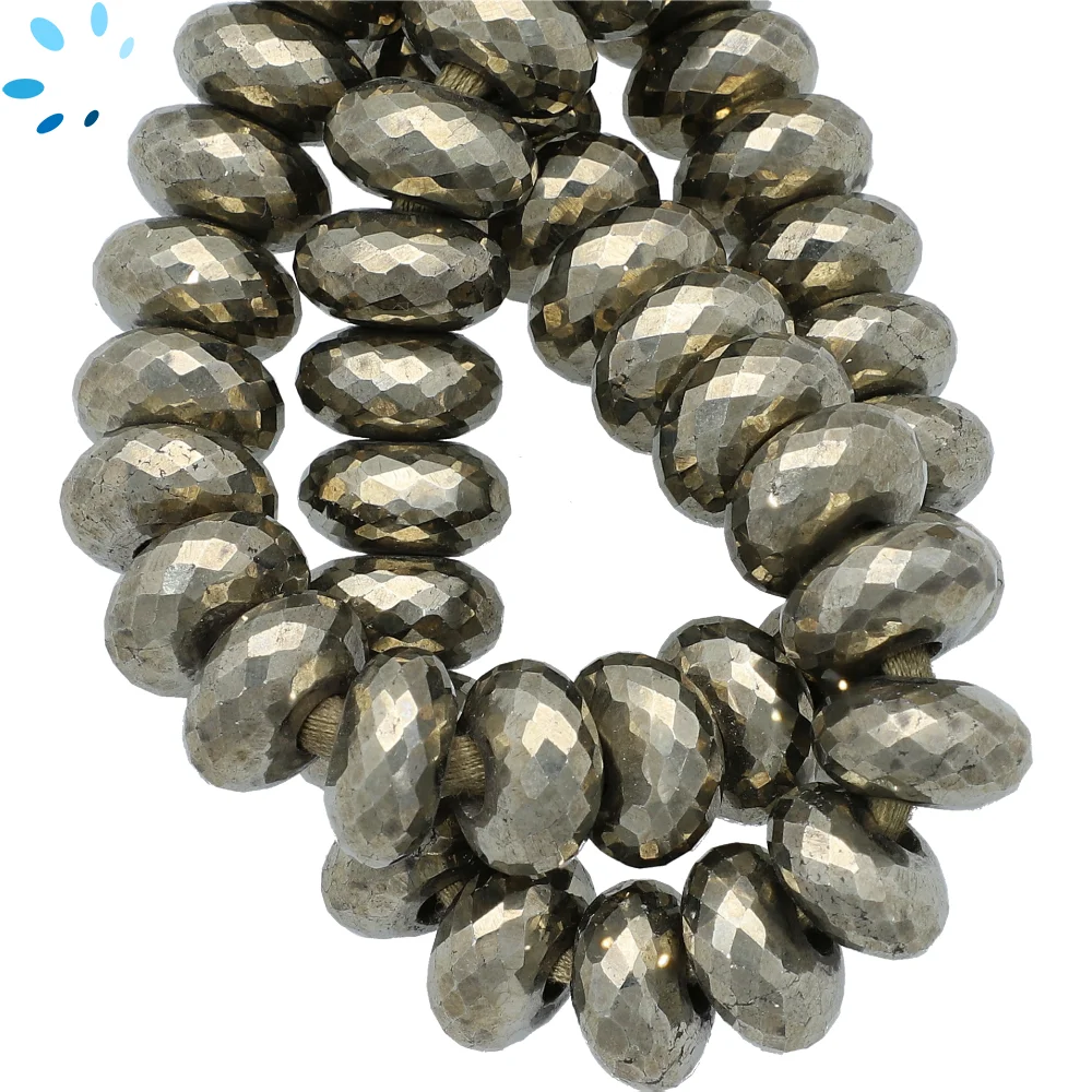 Pyrite Faceted Rondelle Beads 14mm - 8 Inch Strand