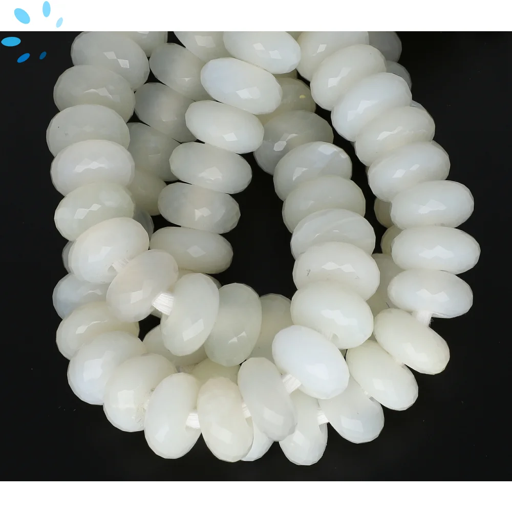 White Chalcedony Faceted Rondelle Beads 14mm - 8 Inch Strand