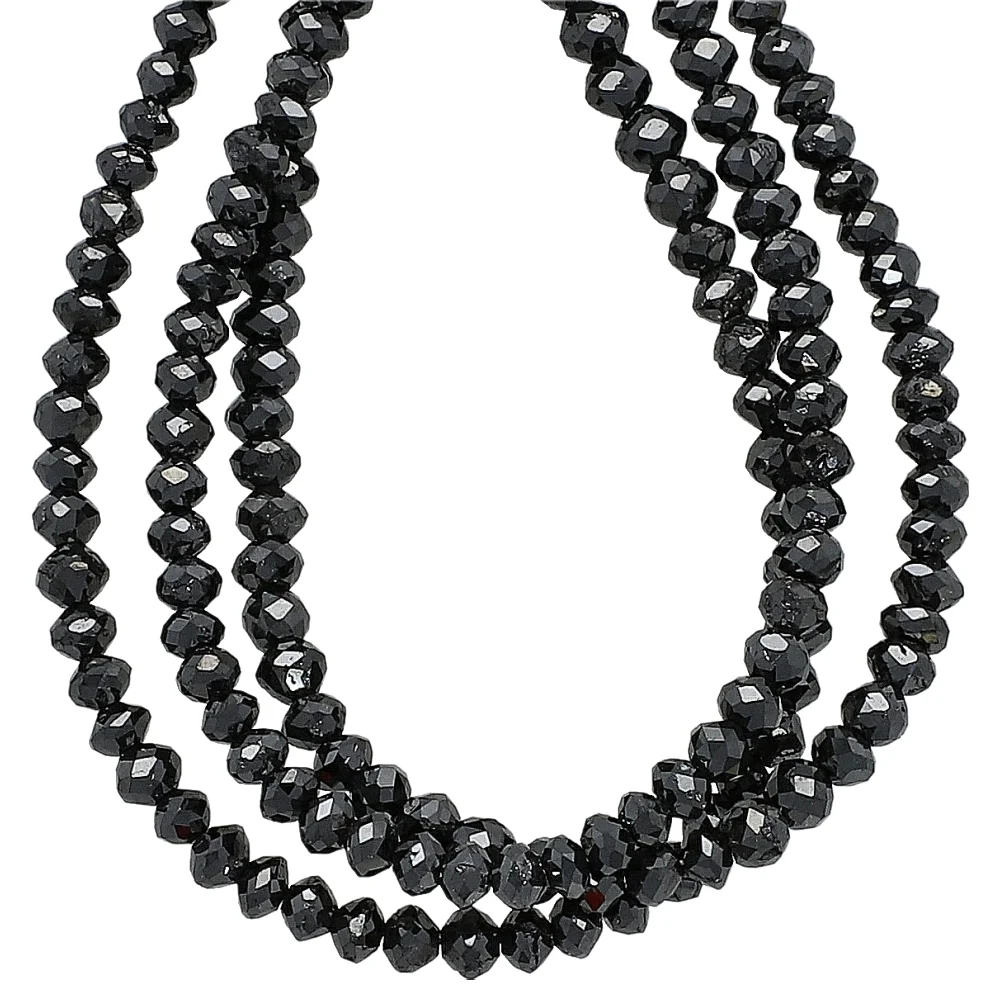 Black Diamond Faceted Rondelle Top to Bottom Drilled Beads 3mm - 14 Inch Strand