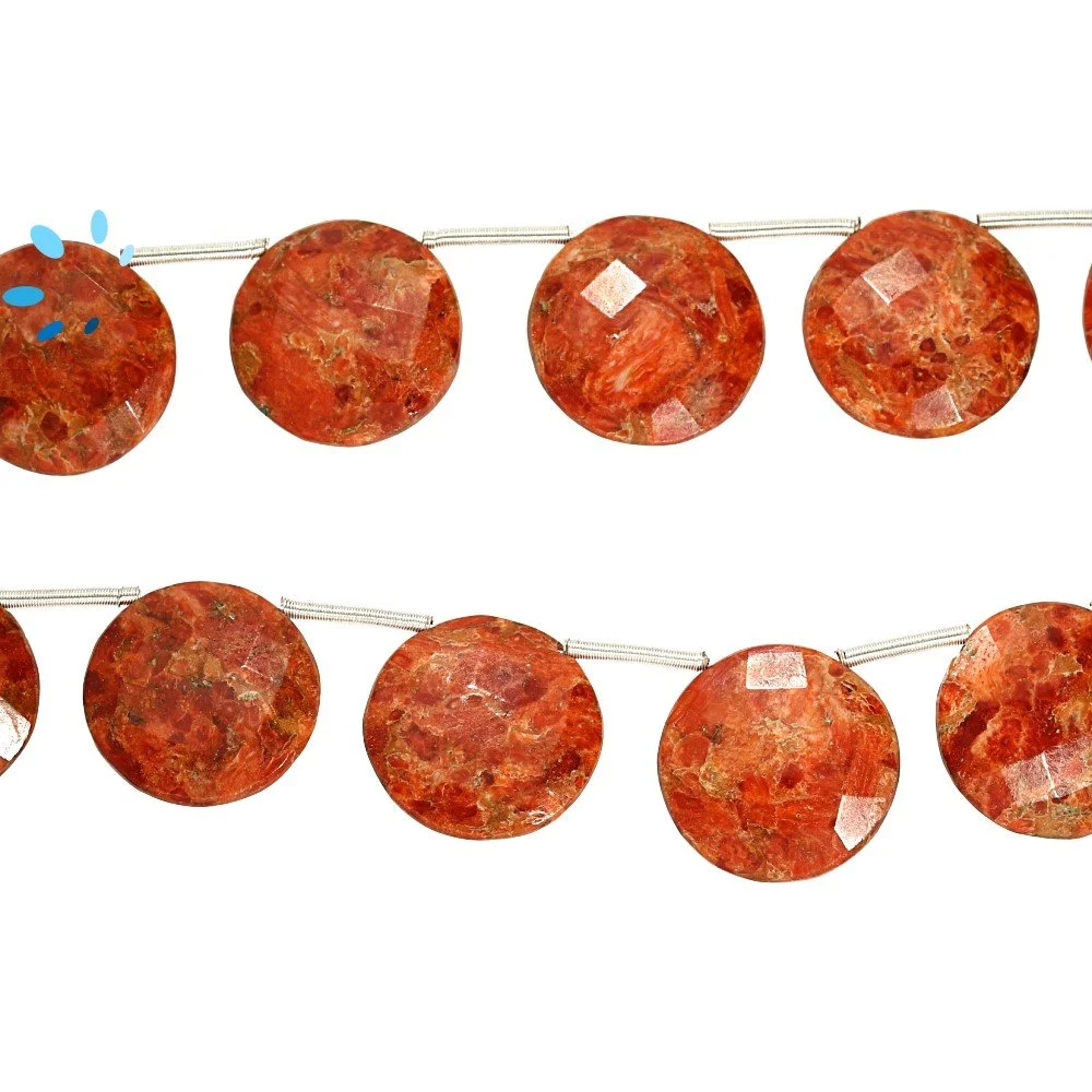 Coral Faceted Coin Top Drilled Beads 12mm - 8 Inch Strand