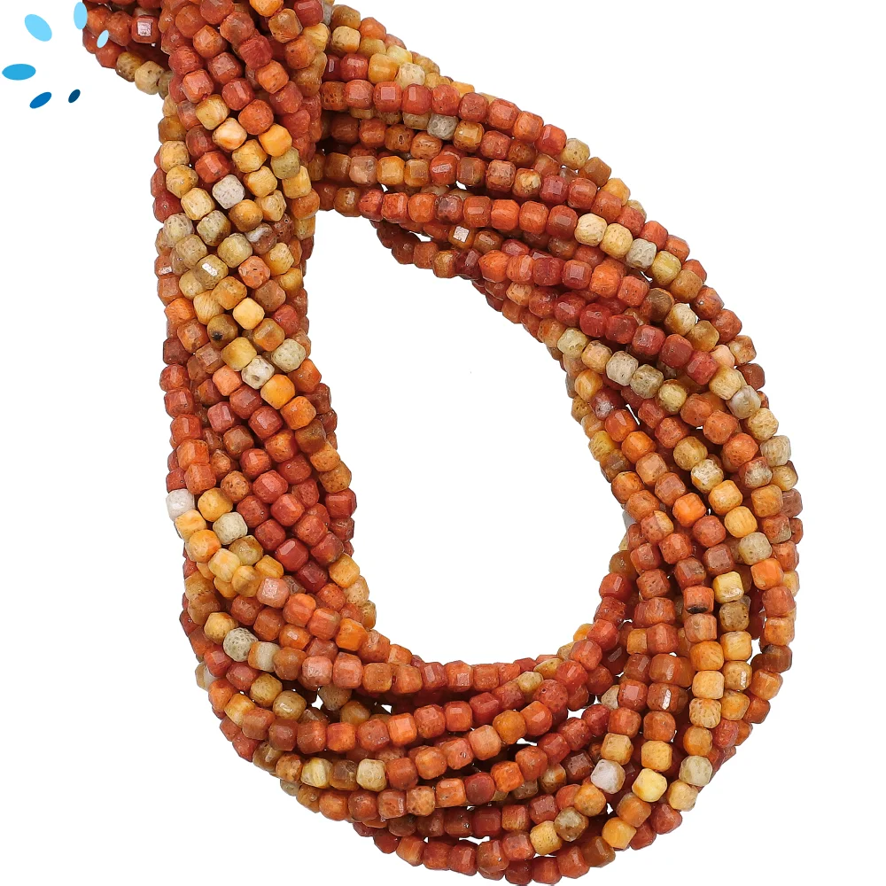 Coral Faceted Cube Top to Bottom Drilled Beads 2mm - 13 Inch Strand
