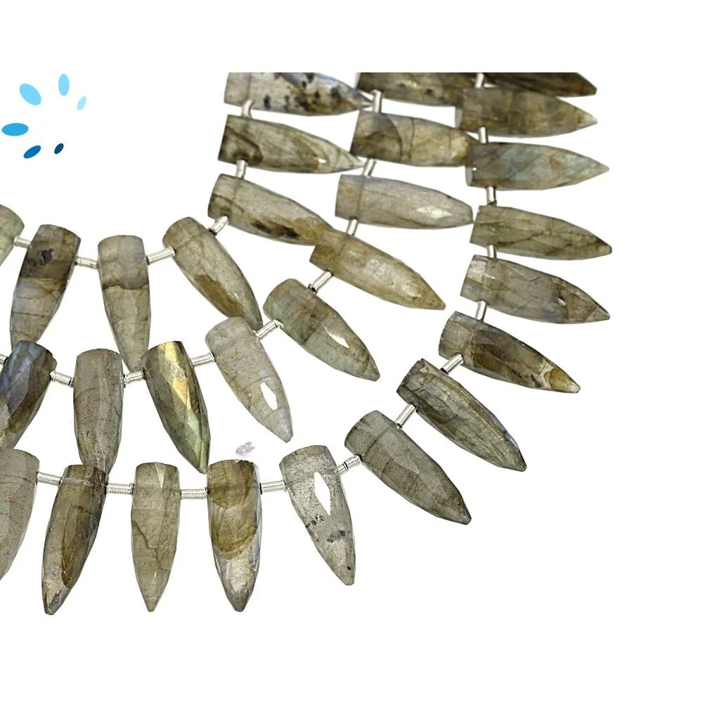 Labradorite Faceted Spike Top Drilled Beads 13x4 - 16x5mm - 8 Inch Strand
