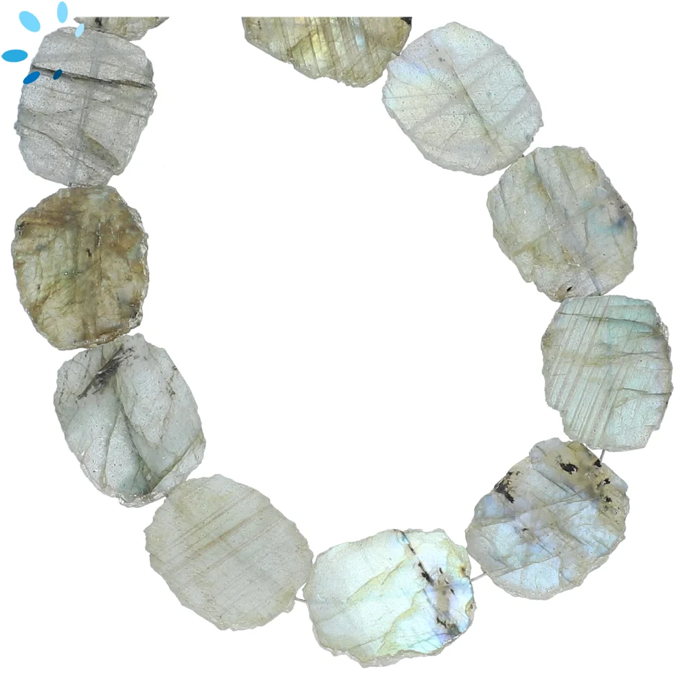 Labradorite Smooth Slice Top to Bottom Drilled Beads 16x13 - 18x14mm - 8 Inch Strand