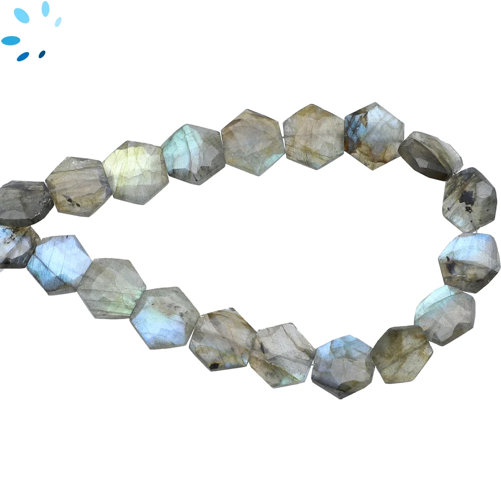 Labradorite Faceted Hexagon Top to Bottom Drilled Beads 9mm - 8 Inch Strand