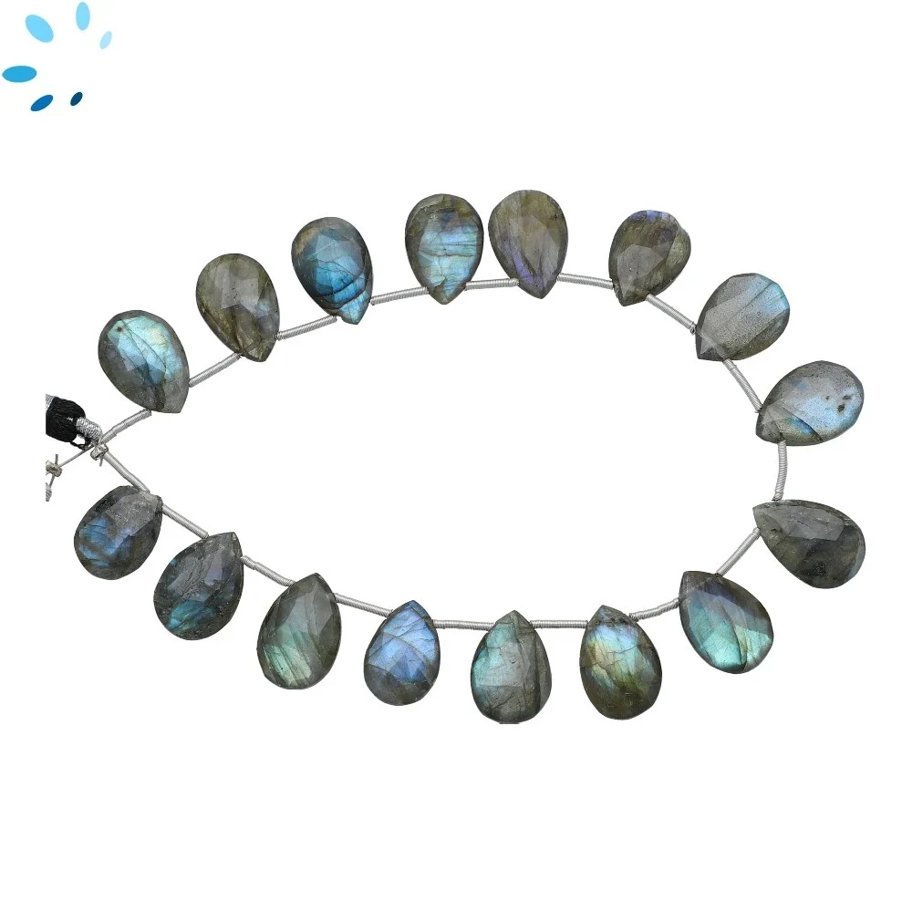 Labradorite Faceted Pear Top Drilled Beads 16x13 - 18x14mm - 8 Inch Strand