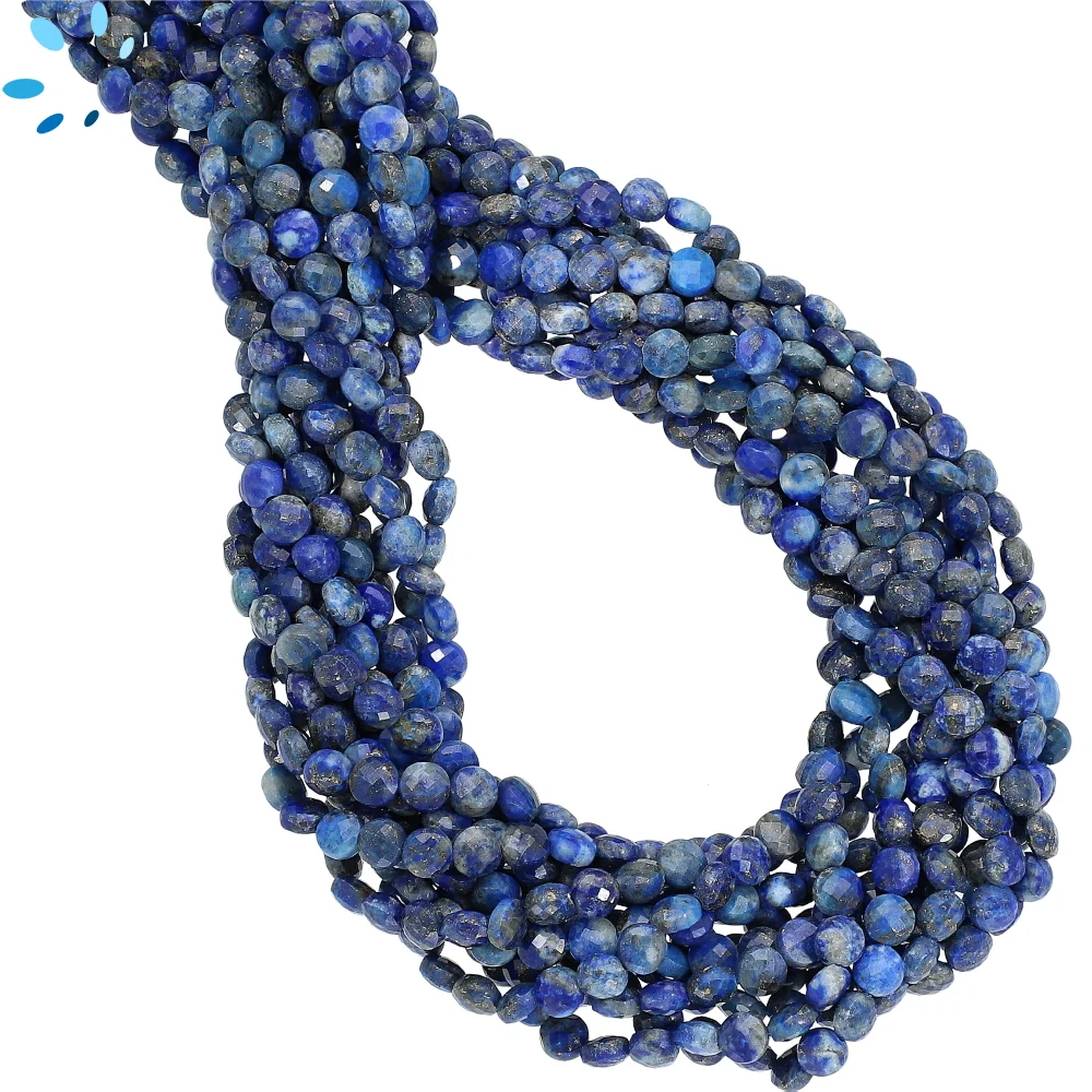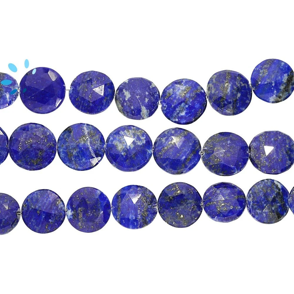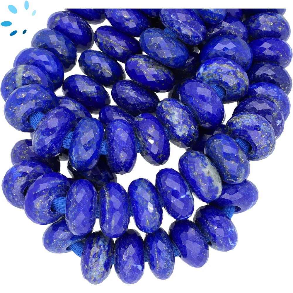 Lapis Faceted Rondelle Top to Bottom Drilled Beads 14mm - 8 Inch Strand
