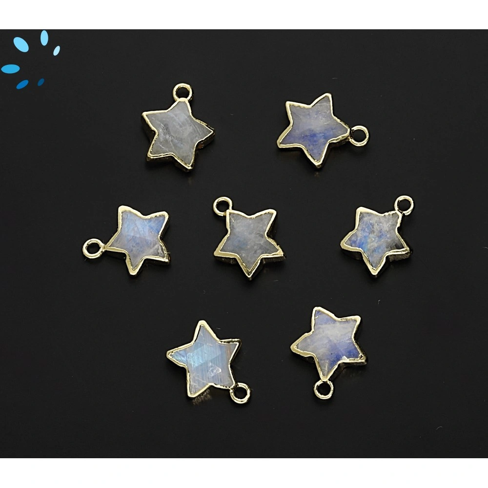 Rainbow Moonstone Star Shape 10x10MM Electroplated Charm "SET OF 8" - Gold Plated
