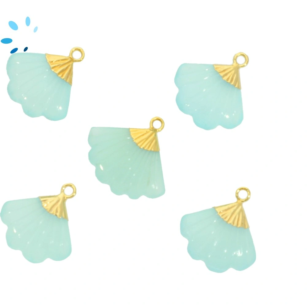 Aqua Chalcedony Carved Fan 17x14 mm " SET OF 2 "-Gold Electroplated Pendant