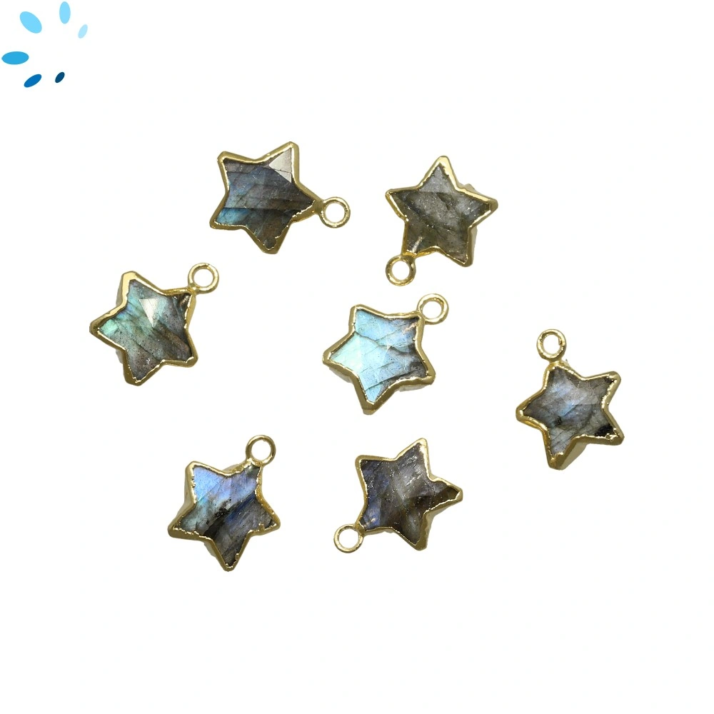 Labradorite Star Shape 9x9 - 10x10 Mm Electroplated Charm "SET OF 8"-Gold Plated