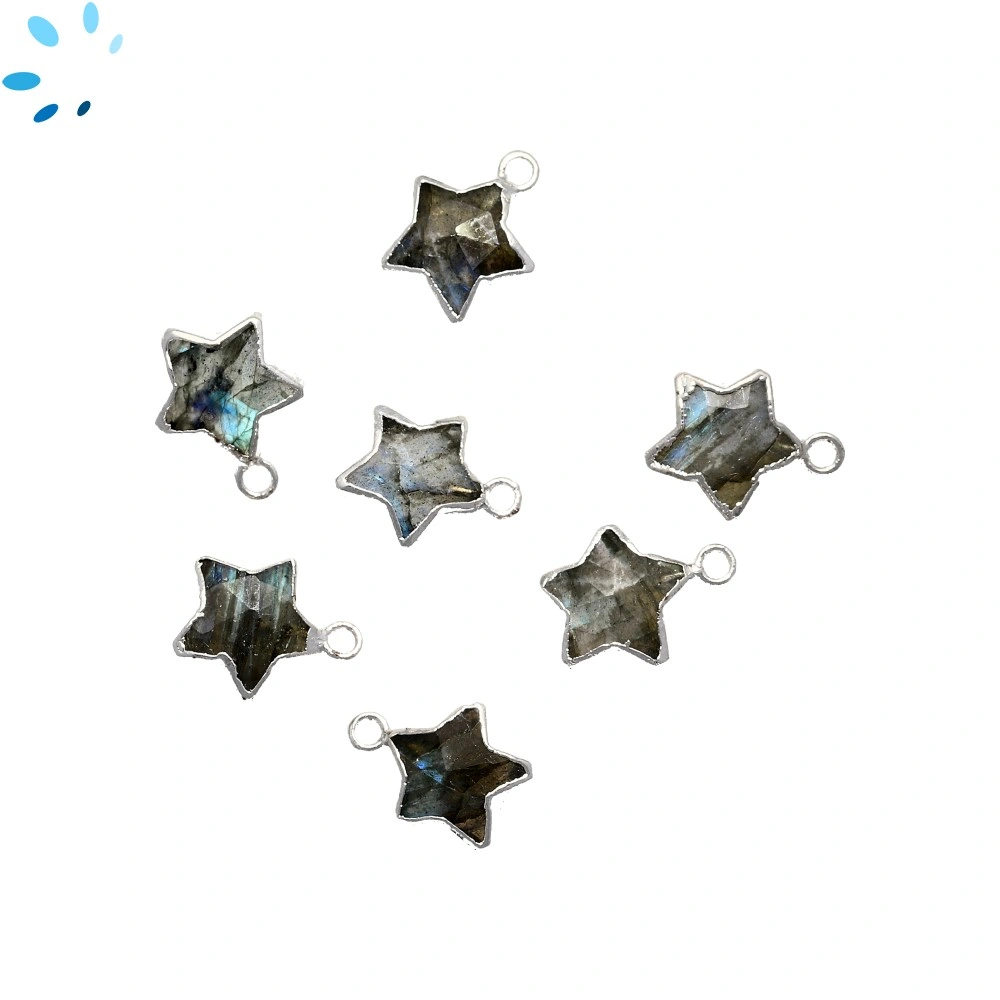 Labradorite Star Shape 9x9 - 10x10 Mm Electroplated Charm "SET OF 8"-Silver