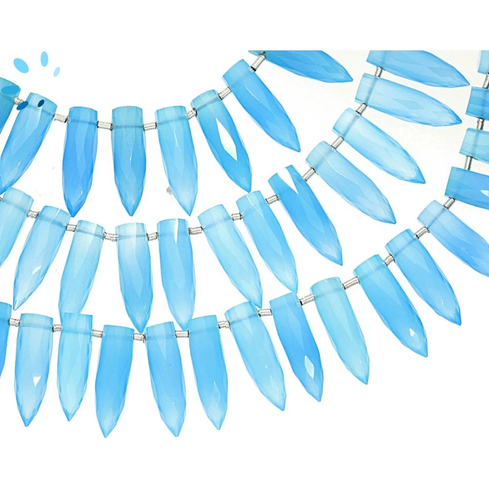 Blue Chalcedony Faceted Spike Top Drilled Beads 15x5 - 17x6mm - 8 Inch Strand