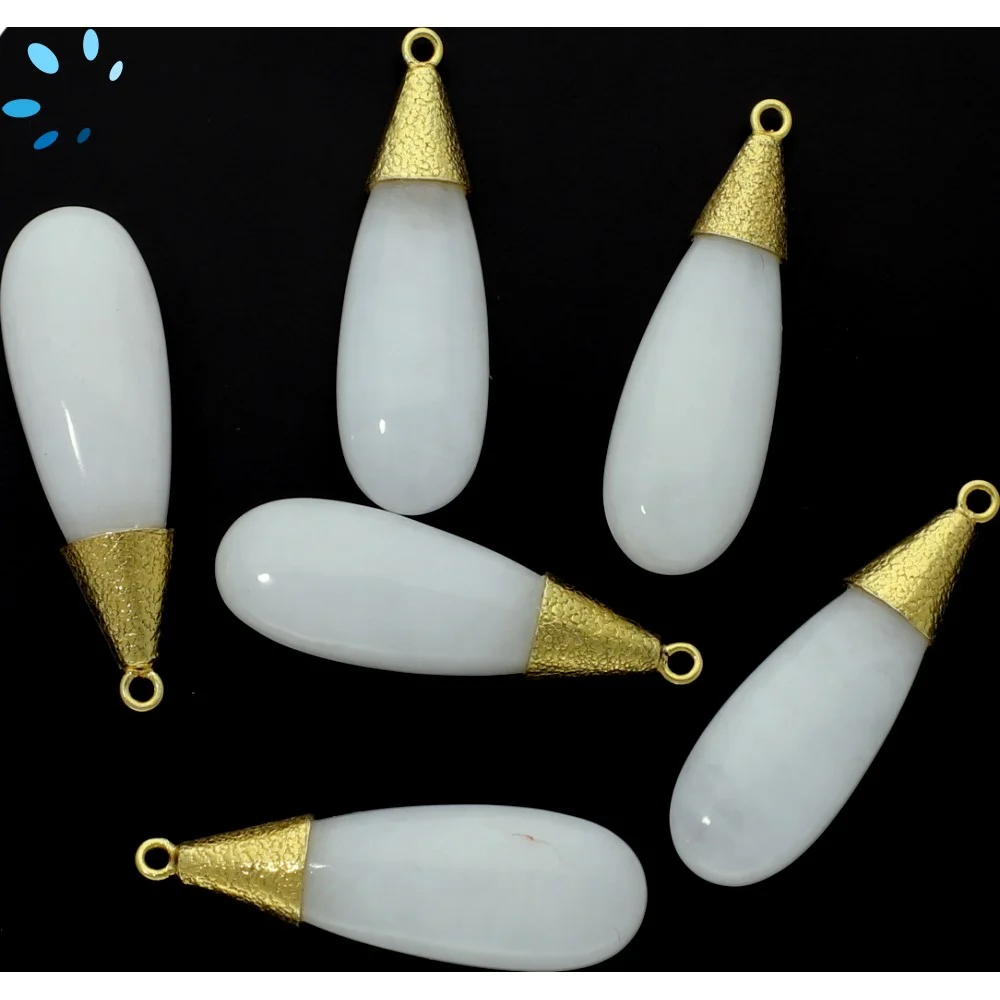 Aventurine Long Drop Bezel Pendant Charm 30x10 - 35x12mm - 18k Gold Plated Sterling Silver - Set of 2