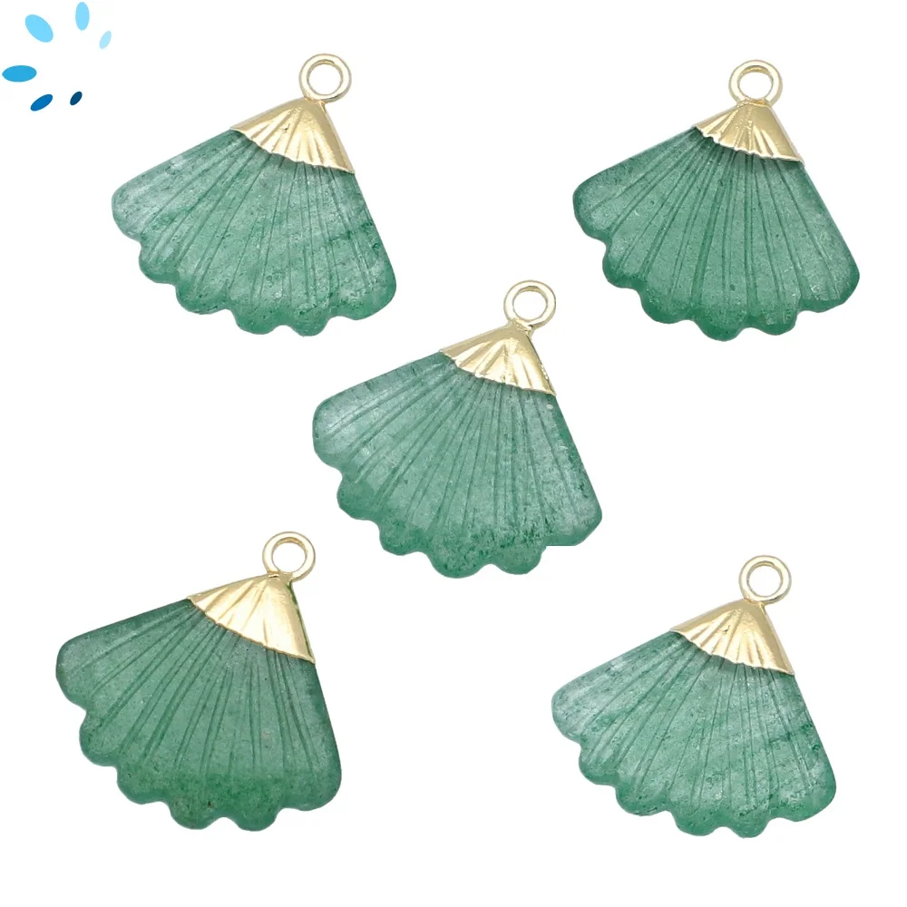 Green Aventurine Fan Charm Pendant 19x17mm 18k Gold Electroplated - Set of 2