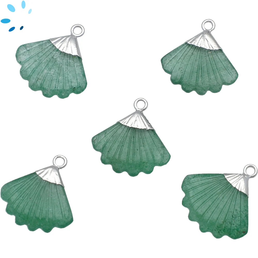 Green Aventurine Fan Pendant Charm 19x17mm Platinum Electroplated - Set of 2