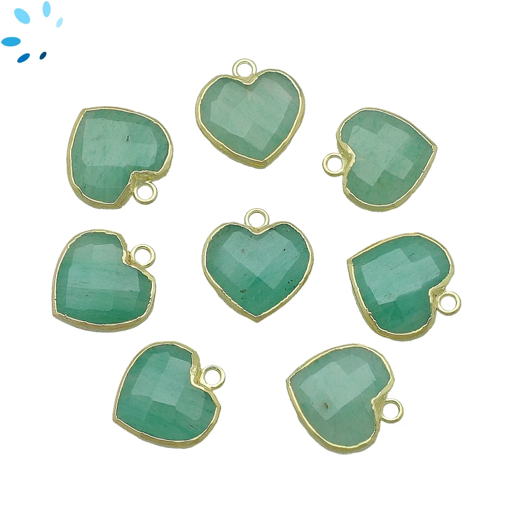 Green Aventurine Heart Charm Pendant 14mm 18k Gold Electroplated - Set of 4