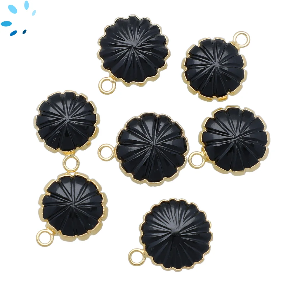 Black Onyx Top to Bottom Drilled Slice Beads 15x12mm - 18k Gold Electroplated