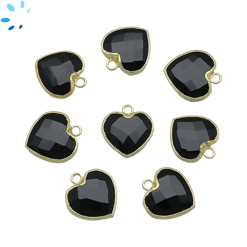 Black Onyx Faceted Heart Bezel Set Beads 14mm Top Drilled - 18k Gold Plated Sterling Silver