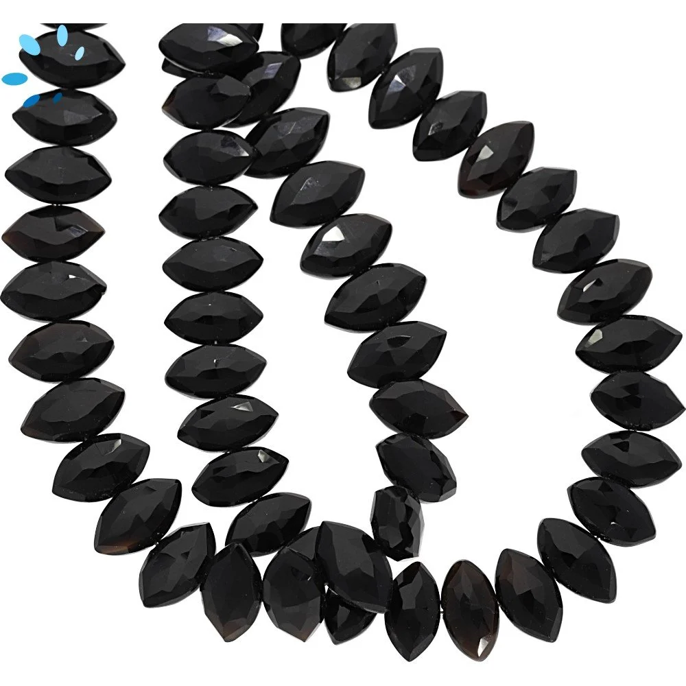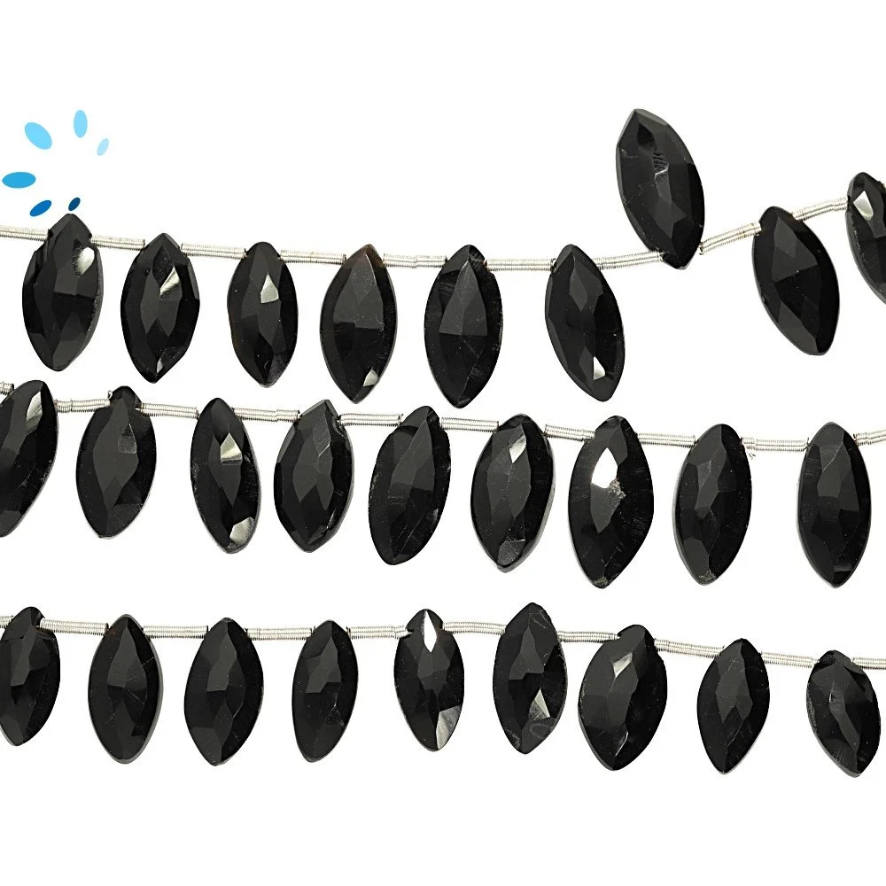Black Onyx Faceted Marquise Top Drilled Beads 10x6 - 12x7mm - 8 Inch Strand