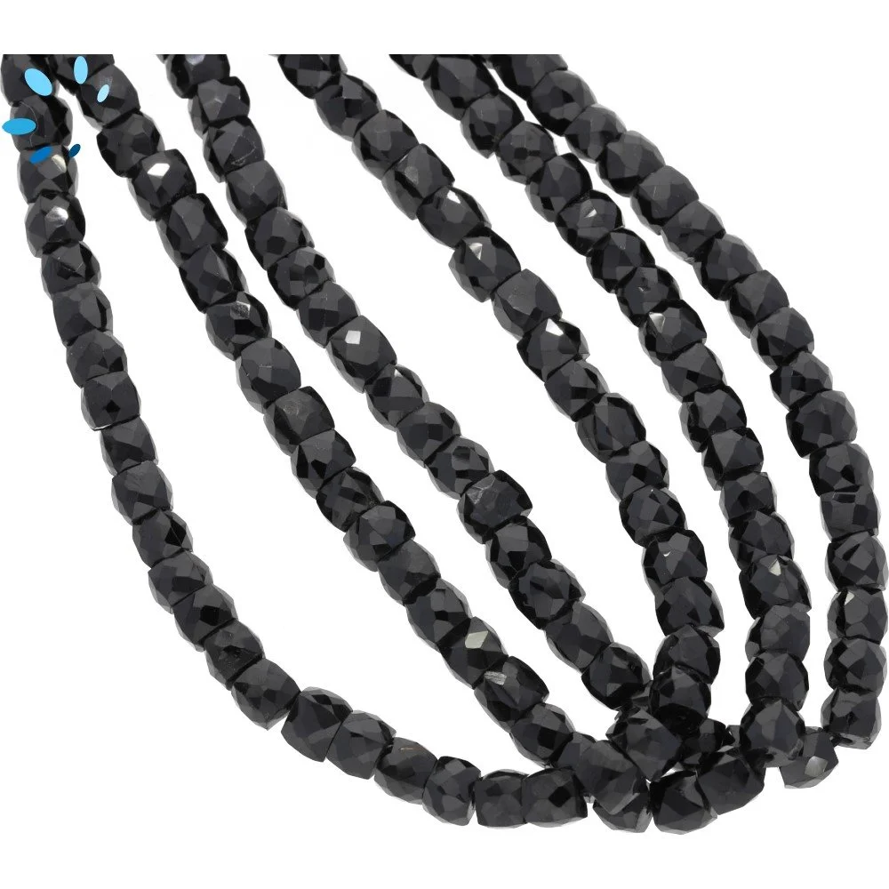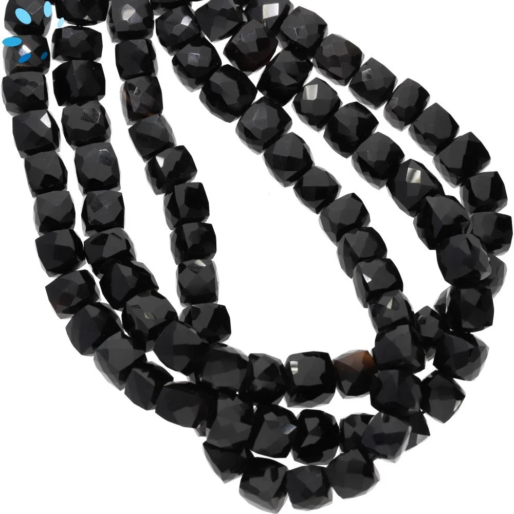 Black Onyx Faceted Cube Top to Bottom Drilled Beads 5mm - 13 Inch Strand