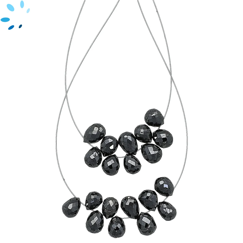 Black Diamond Faceted Teardrop Top Drilled Beads 5x3mm - 1.5 Inch Strand