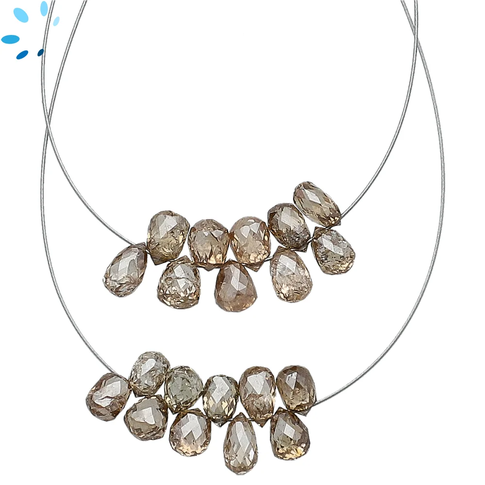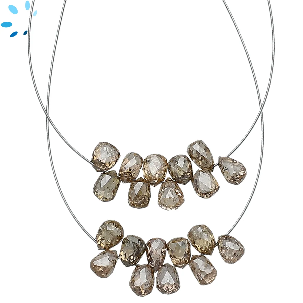 Champagne Diamond Faceted Teardrop Top Drilled Beads 4x3mm - 1.5 Inch Strand