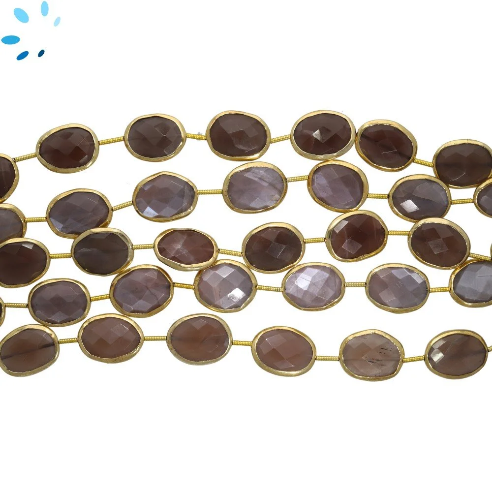 Chocolate Moonstone Faceted Coin Bezel Set Beads 12mm Top Drilled - 18k Gold Plated Sterling Silver