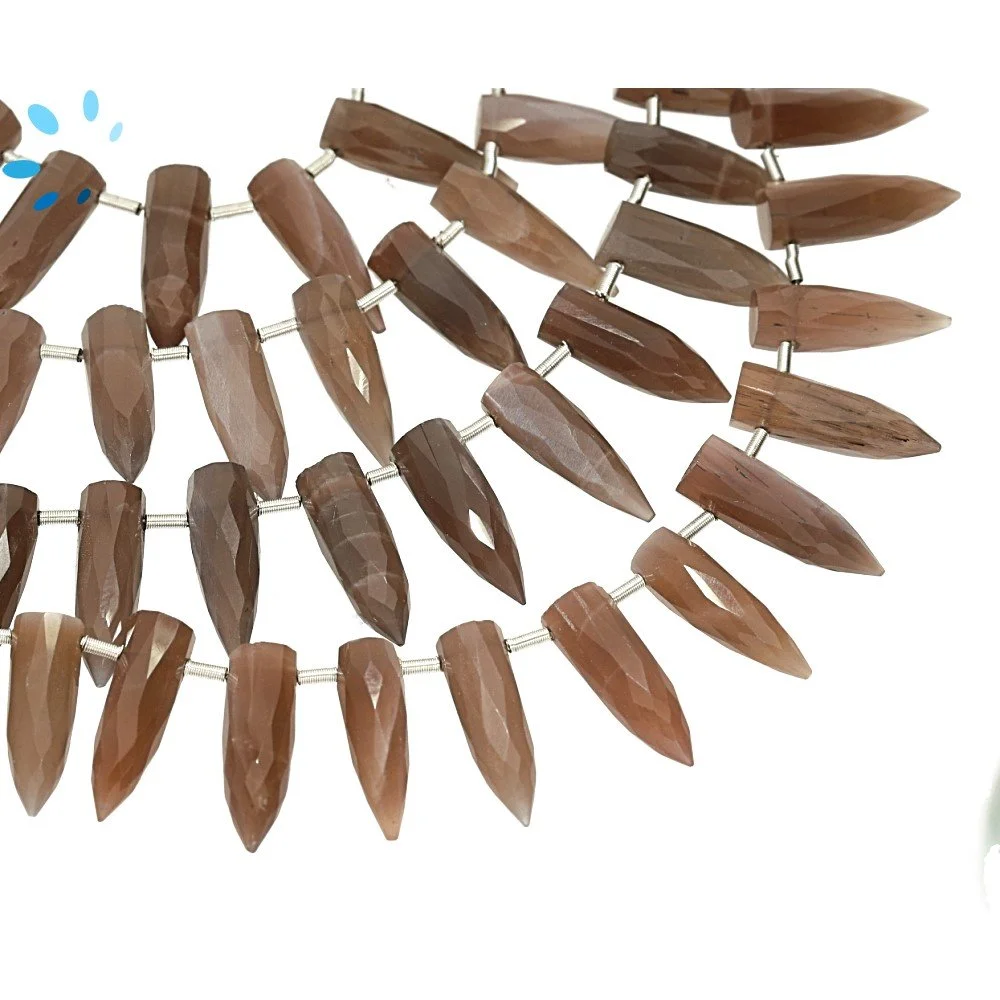 Chocolate Moonstone Faceted Spike Top Drilled Beads 13x4 - 16x5mm - 8 Inch Strand