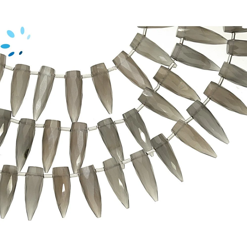 Gray Moonstone Faceted Spike Top Drilled Beads 15x5 - 17x6mm - 8 Inch Strand