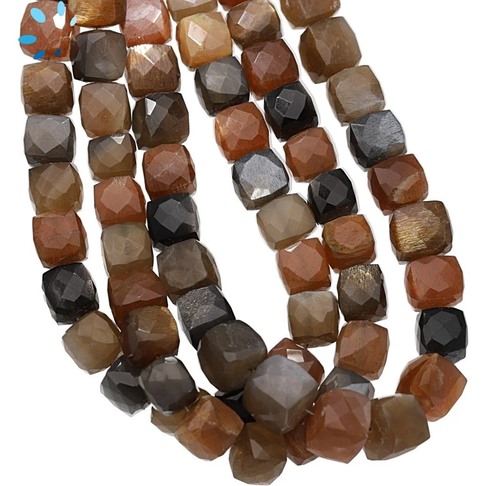 Multi Moonstone Faceted Cube Top to Bottom Drilled Beads 8mm - 8 Inch Strand