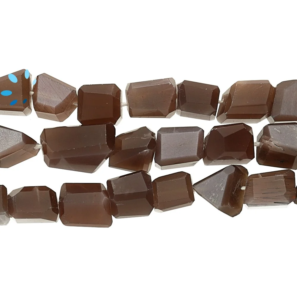 Chocolate Moonstone Faceted Nuggets Top to Bottom Drilled Beads 12x10 - 15x10mm - 13 Inch Strand