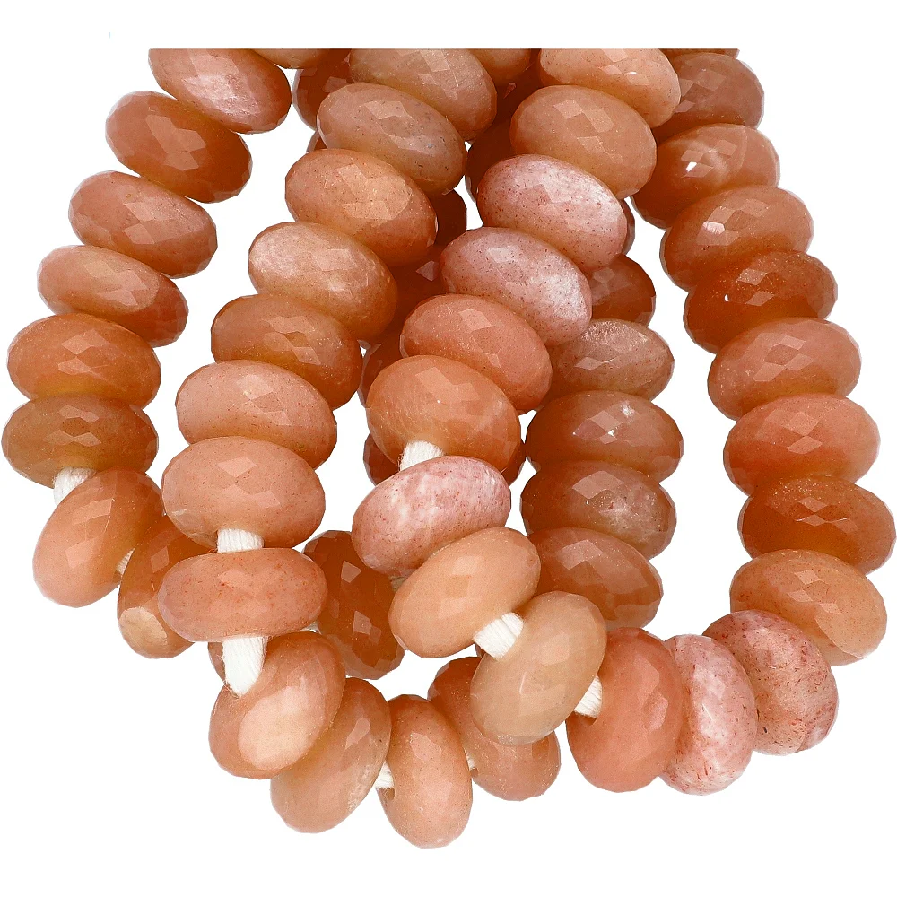 Peach Moonstone Faceted Rondelle Top to Bottom Drilled Beads 14mm - 8 Inch Strand