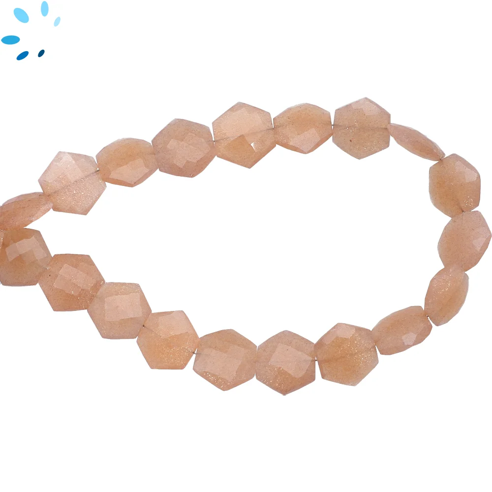 Peach Moonstone Faceted Hexagon Top to Bottom Drilled Beads 9mm - 8 Inch Strand