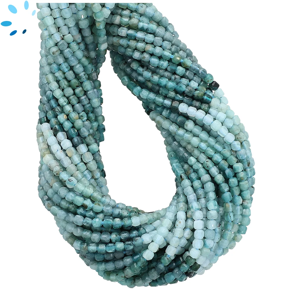 Grandidierite Faceted Cube Top to Bottom Drilled Beads 2.5mm - 13 Inch Strand