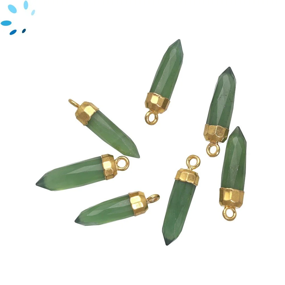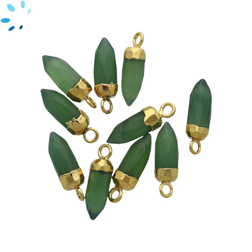 Green Serpentine Spike Charm Pendant 13x5mm 18k Gold Electroplated - Set of 4