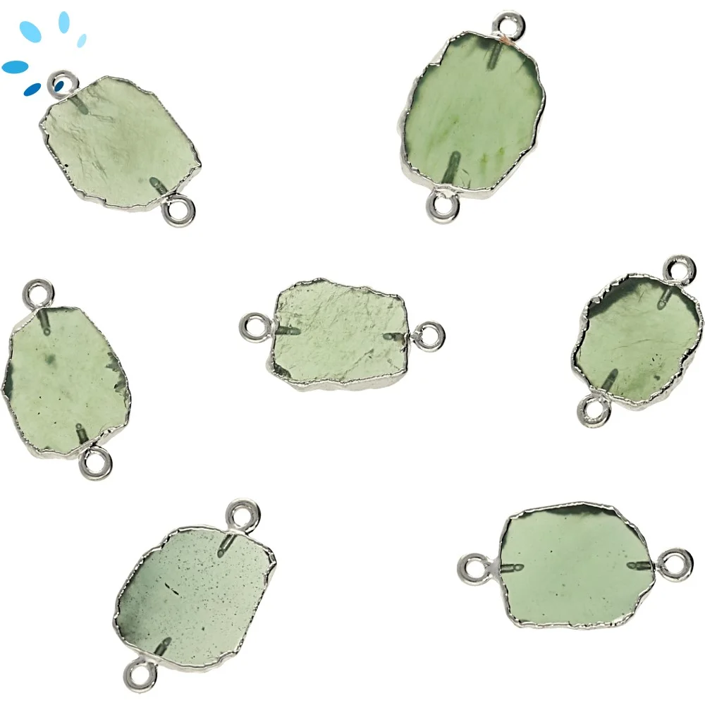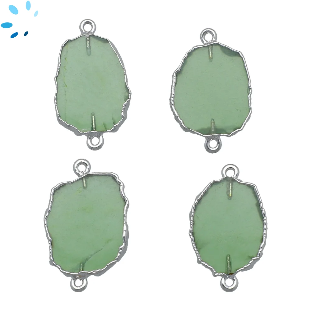 Green Serpentine Slice Connector 12x10 - 14x12mm Silver Electroplated - Set of 4