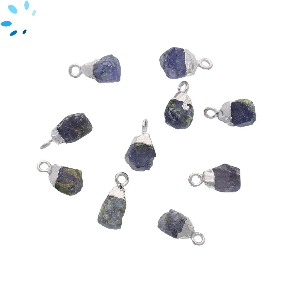 Iolite Rough Charm Pendant 8x5mm - 10x7mm Platinum Electroplated - Set of 4