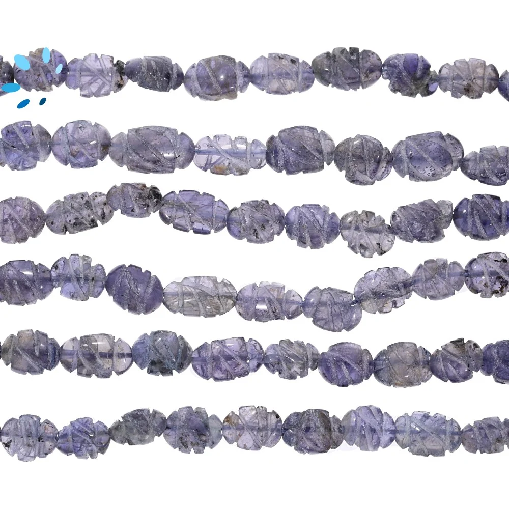 Iolite Carved Oval Top to Bottom Drilled Beads 7x5 - 10x8mm - 14 Inch Strand