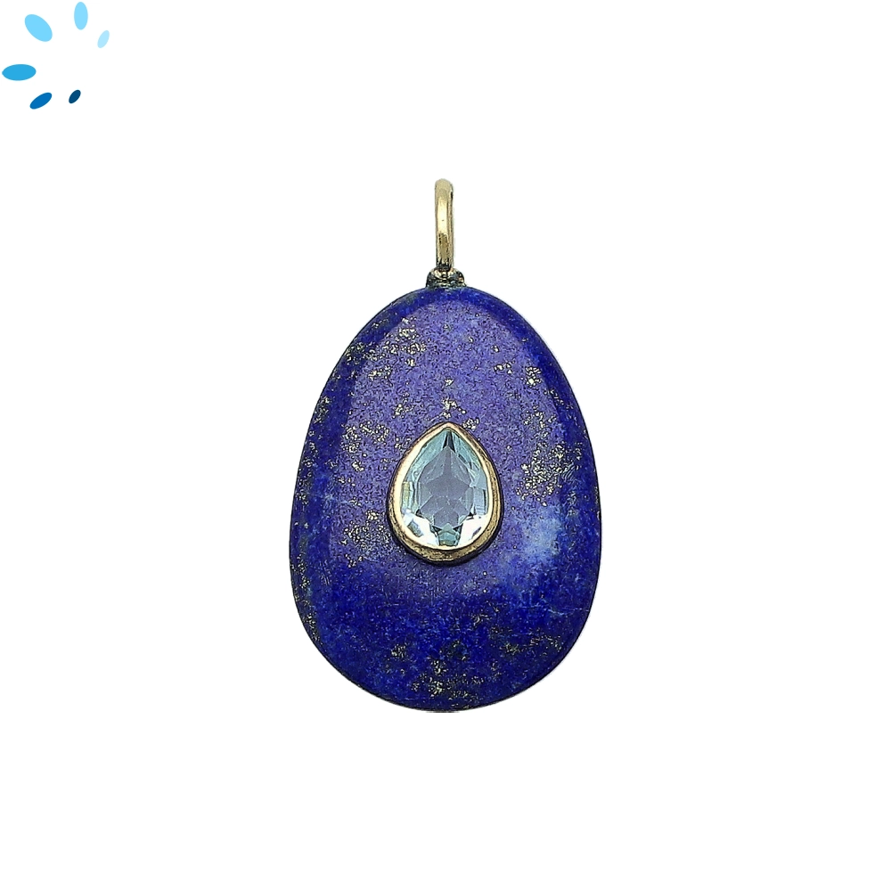 Lapis & Blue Topaz Pear Inlay Charm Pendant 27x20mm - 18k Gold Plated Sterling Silver