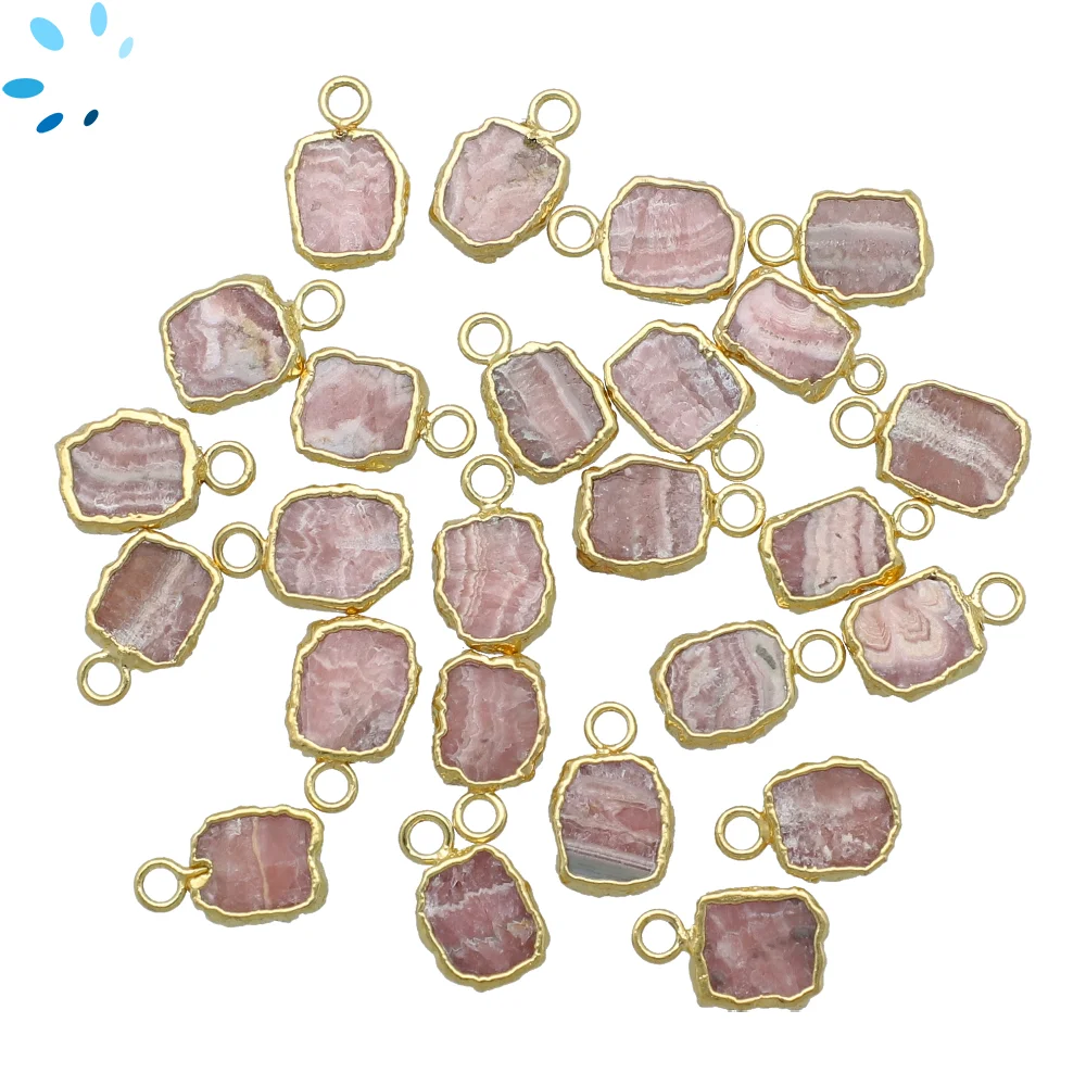 Rhodochrosite Slice Charm Pendant 8x6 - 10x7mm 18k Gold Electroplated - Set of 4