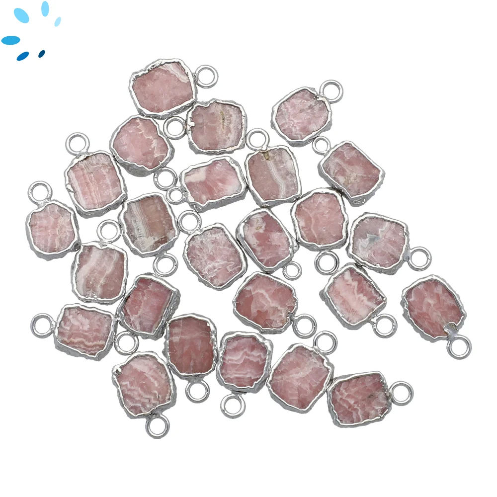 Rhodochrosite Rough Pendant Charm 8x5mm - 10x7mm Platinum Electroplated - Set of 4