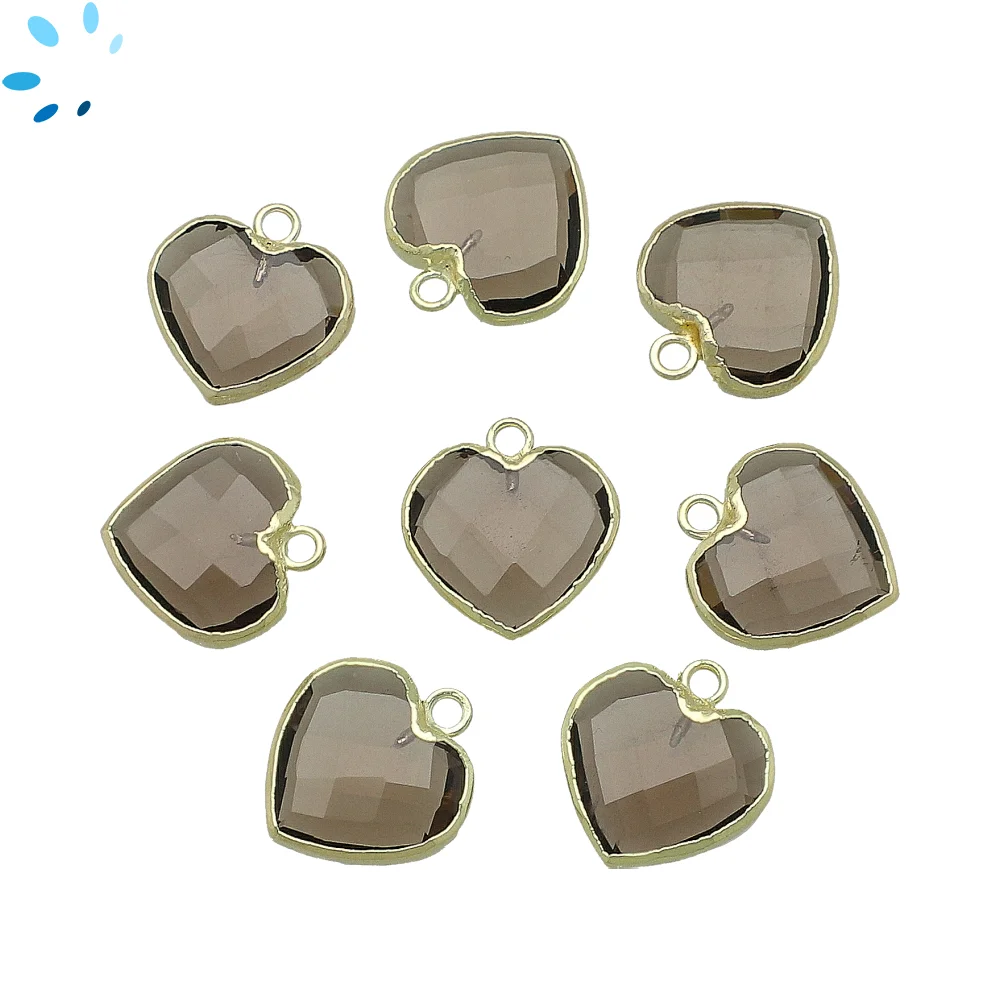 Smoky Quartz Faceted Heart Bezel Set Beads 14mm Top Drilled - 18k Gold Plated Sterling Silver
