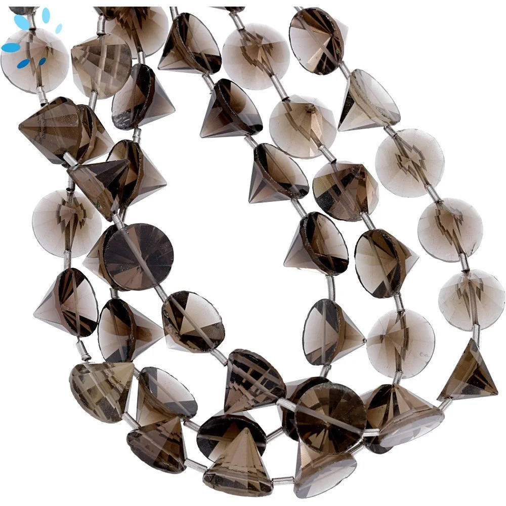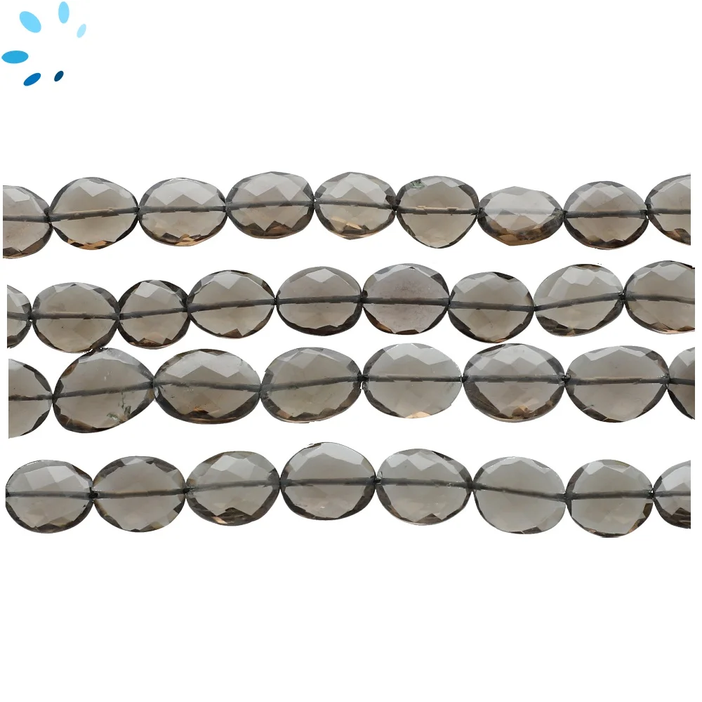 Smoky Quartz Faceted Coin Top to Bottom Drilled Beads 8mm - 14 Inch Strand