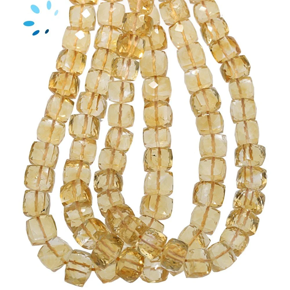 Smoky Quartz Faceted Cube Top to Bottom Drilled Beads 8mm - 8 Inch Strand