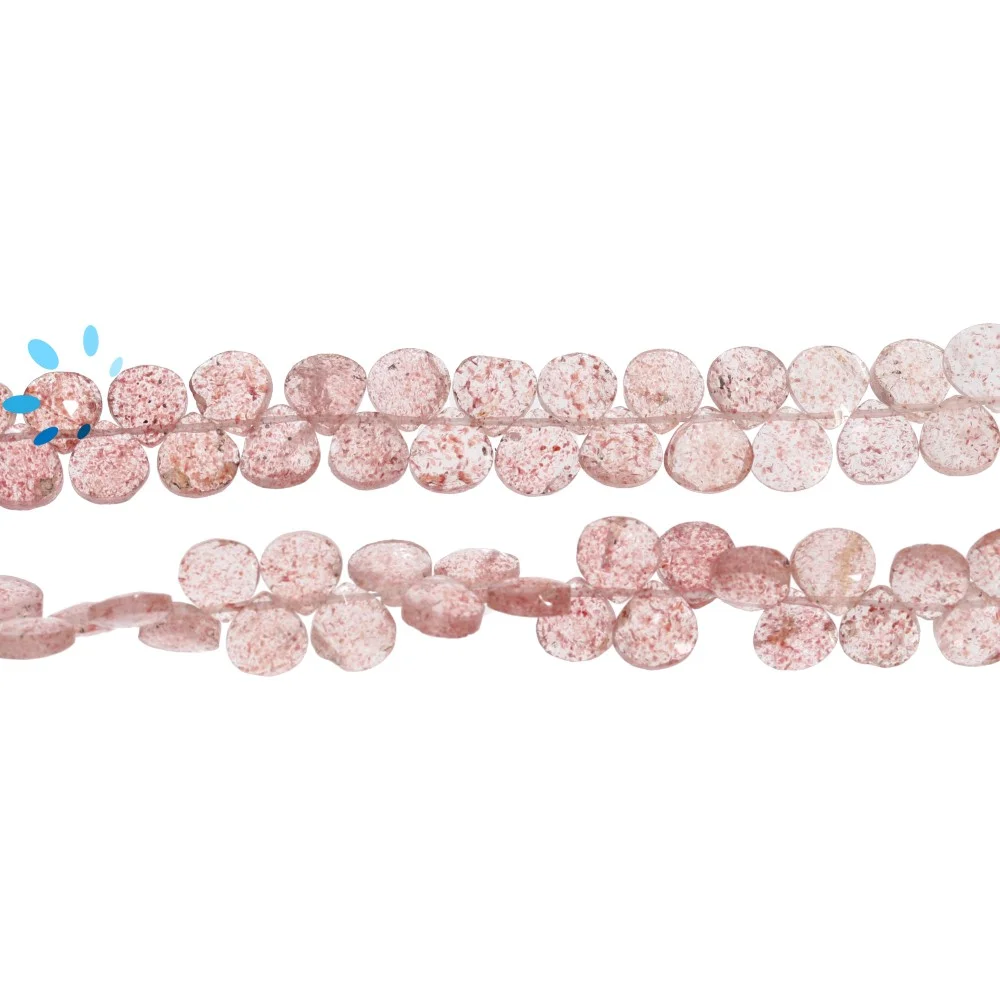 Strawberry Quartz Faceted Teardrop Top Drilled Beads 7x5mm - 8 Inch Strand