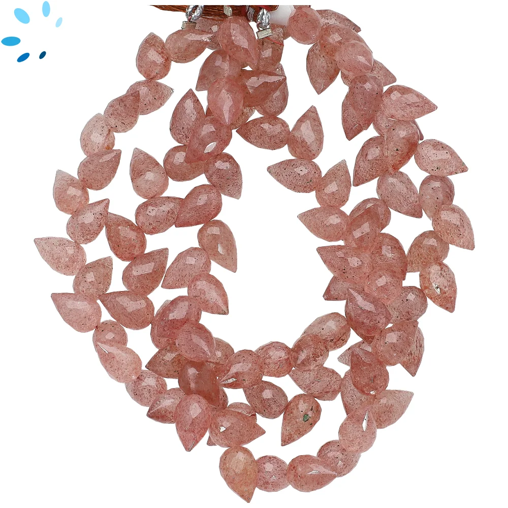 Strawberry Quartz Faceted Teardrop Herringbone Drilled Beads 9x6mm - 8 Inch Strand