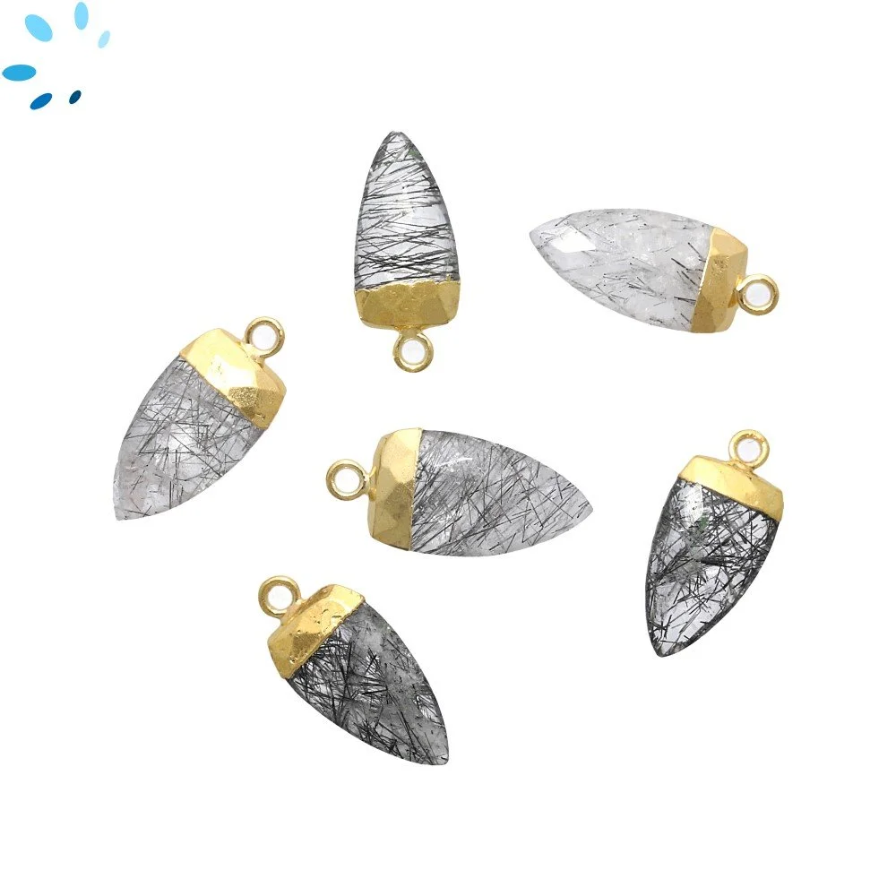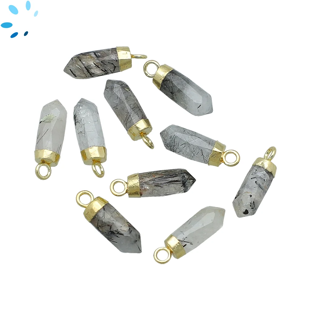 Tourmaline Quartz Spike Pendant Charm 13x5mm 18k Gold Electroplated - Set of 4